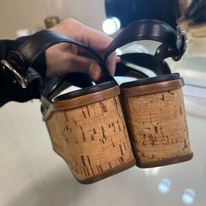 Beautiful and super comfortable Prada, leather cork platform wedges. Gently loved.