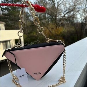 Prada bag has been paired (converted into crossbody bag )with unbranded chain chain and rivets