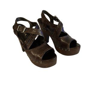 Prada distressed leather, wood platform/heel shoes Size 5 (but runs a bit larger). 4.5" heels and leather lining.