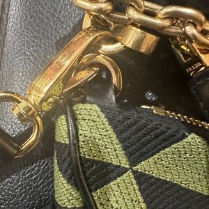 Beautiful green canvas and black leather bag, pristine condition. Comes with dust bag and authenticity card. Never worn. Has adjustable shoulder strap and gold chain strap. Can be worn single or double, shoulder or crossbody wear body!