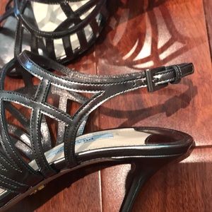 Worn a couple of times. Super comfy. Fits like a size 8. Comes with dust bag. Box and heel caps. 3.5” heel. Adjustable straps.