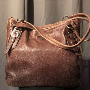 Gorgeous Prada hobo bag in beautiful Lampone Sfumato, which is a raspberry ombré color. Color darkens toward bottom. Naturally distressed look with a gorgeous sheen. Interior has Prada’s trademark jacquard lining in plum color, one large zippered pocket and one snap pocket, top zip closure. There is a zipper around sides and bottom which can be unzipped to add more space. There is wear throughout, which in my opinion, adds to the cool distressed look of the bag.
