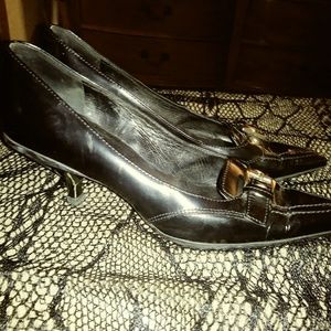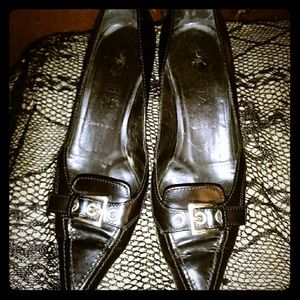 Prada italian leather silver buckle pointed heel