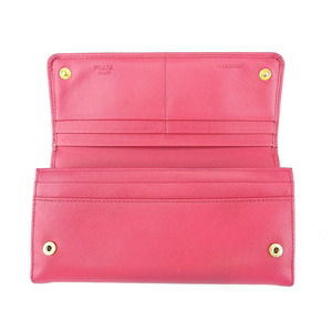 Prada leather long pink Saffiano zipper ribbon Wallet