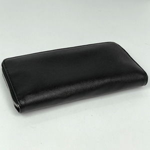 Prada leather long zip bill black Wallet coin