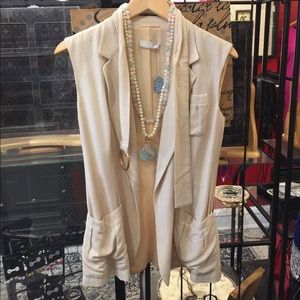 Have you ever dreamed of wearing Prada? Well yes, we all have and now you can own this linen safari belted vest with a fashion twist. Beautiful details like contrast stitched lapels and inverted pleated pockets. Wear it with a wide striped pant or layered over a maxi dress. Just stunning!