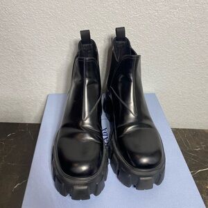 Prada monolith brushed leather chelsea boots
