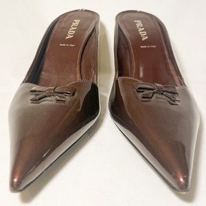 Prada mule, embellished with bow in metallic bronze, Sz 39.5