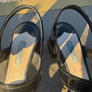 Gorgeous Prada slingback patent leather sandals with the flower buckle. Size 41 euro