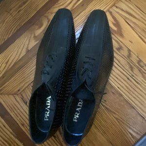 Prada men's perforated leather oxford shoes in nearly new condition. The uppers are in immaculate condition; there is some very slight wear on the edges of the heels. Toes and heels are reinforced with taps. Size 10 men's. Accepting offers.