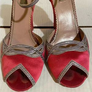 Prada satin & snakeskin high heel size 38.5 some scuffs stains marks on satin come with dust bag before placing an order please check take a moment to view all photos using feature for a closer look