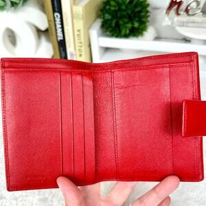 This vintage Prada red leather compact wallet is in excellent condition and ready for a new home!