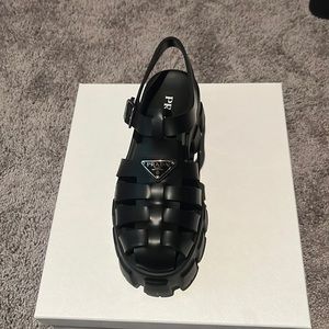 Brand new in box. Bought from Saks Fifth Ave. Never worn, only tried on one shoe lol. Fits true to size and actually very comfortable. I’ve just never worn them. Sold out online