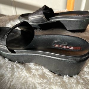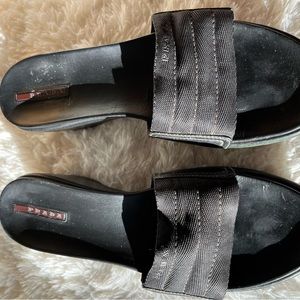 Prada size 9 black nylon top with leather lining and insoles.