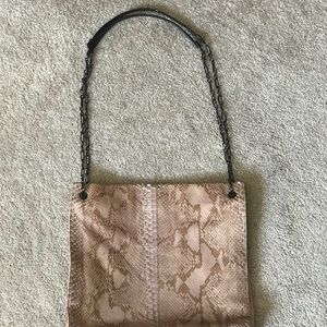 Prada chain handle brown snakeskin shoulder bag. Minor scratch/wear on shoulder strap (see photo) otherwise in perfect condition.