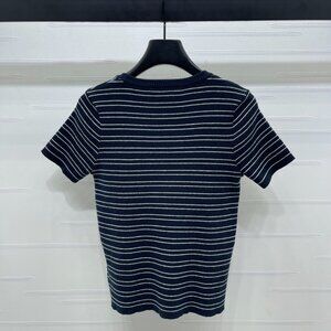 Delicate texture, soft and comfortable, knitted short-sleeved cut, three-dimensional cut adds exquisite tone, full-body vertical stripes knitted texture ➕ horizontal two-color interwoven stripe pattern, versatile style