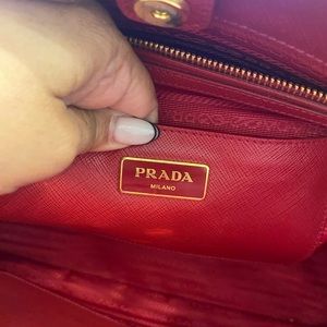 Authentic Prada saffiano lux in color fuoco top handle bag. Great condition lightly worn dust bag included gold hardware luxurious