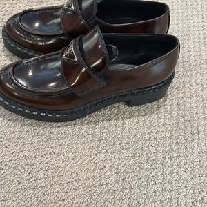 Sophisticated Prada loafers in rich dark brown. Perfect for any occasion. In great condition