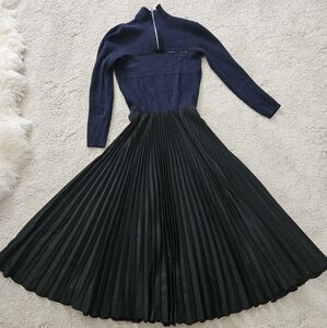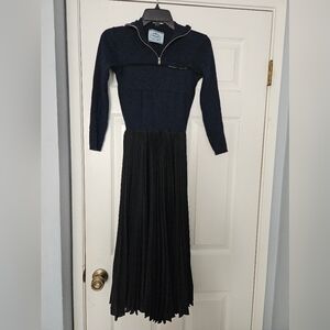 Prada Dress with a blue top in stretch fabric and a black pleated skirt.