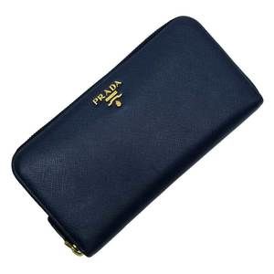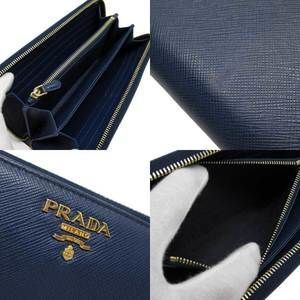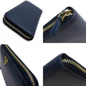 Prada zip Navy Wallet leather Blue Saffiano long