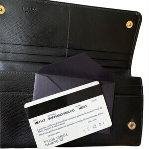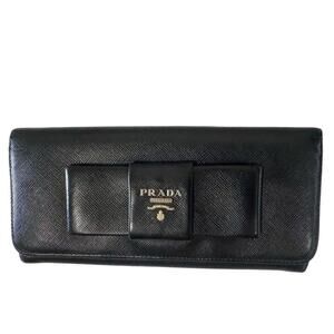 Prada Black Saffiano Fiocco Leather Bow Continental Wallet with COA card Included