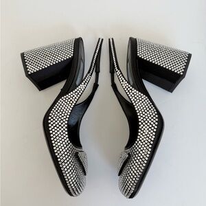 PradaBlack Satin Leather Jewel embellished Triangle logo slingback pumps EU 39