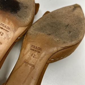 Prada Heels Low Kitten Heel Pointed Toe Buckle Suede in Light Brown Size 42 12