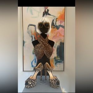 Prada leopard-print dyed calf hair (Italy) d'Orsay sandal. Open toe. Adjustable Mary Jane. Made in Italy. Size 40. 2 Prada dust bags and designer box included.