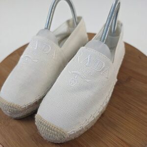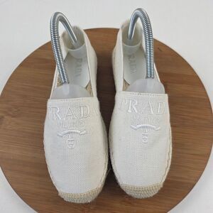 Prada Milano Embossed Logo Espadrilles Slip-On Flats Women’s Size EU 37 US 6.5-7