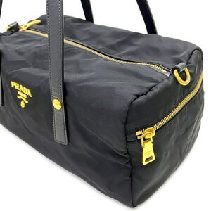 Prada Mini Boston Bag Pocono Handbag Black Gold Metal Fittings