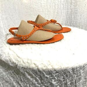 Prada Stud Tassel Orange Leather Sandals Size 38