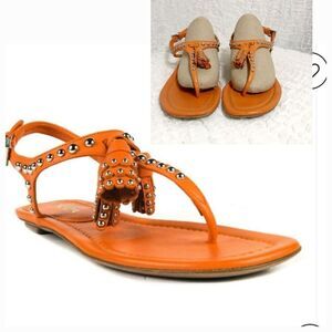 Orange leather sandals with studs and tassel details. Pre-owned in good condition. Please refer to pictures for best description and condition verification.