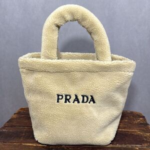 Prada Tan Shearling Tote Bag