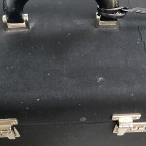 , Check out the pictures. Need some cleanup and has a crease in the canvas that I show in pictures. Measures 12.75 x 8 by almost 9. Inside has no damage, but should be wiped down. Easily used as a handbag if you wanted.