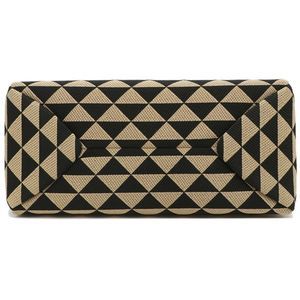 Prada Triangle Jacquard Polyester Leather Black Beige Shoulder Bag