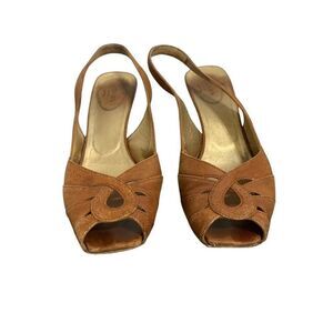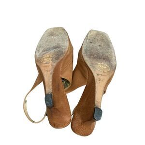 Prada authentic womens solid brown slingback genuine leather wedge sandals 5.5.