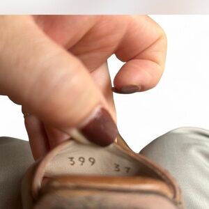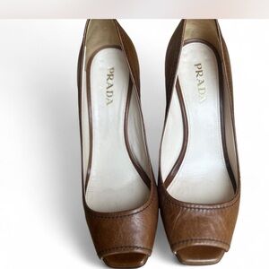 Pradal Leather Camel Tan Square Peep Toe Wedges Size 37 or US 7