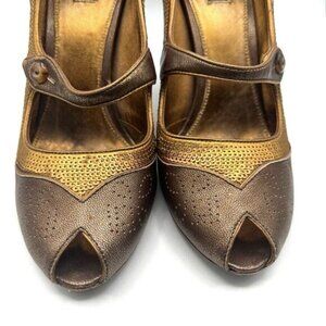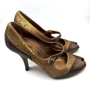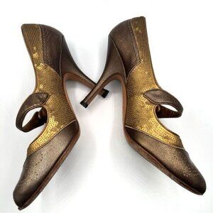 This is an authentic Prada pair of Enchanting and attractive these Mary Jane pumps from the House of Prada are beautiful in every wayThey are made from vintage brown leather and sequins on the exterior