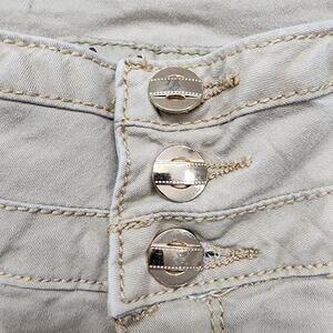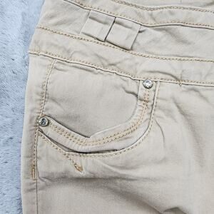 Praga Jeans Women 11 Juniors Tan Triple Button Mid Rise Skinny Leg Stretch Denim
