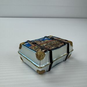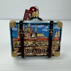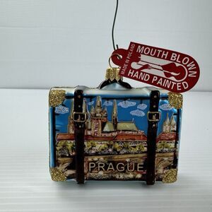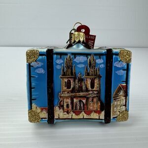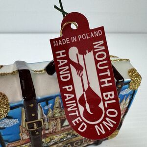 Prague Suitcase Christmas Ornament Mouth Blown Glass Hand Painted Poland