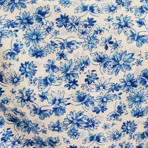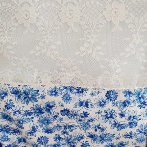Blue & White Floral Print Pattern Matching Waist Tie Lace Bodice