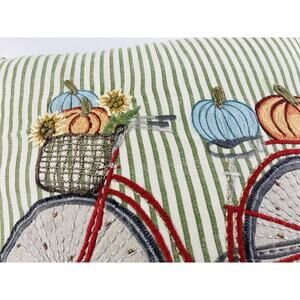 Throw Pillow Bicycle Pumpkin Embroidered Fall Striped zippered Sunflower Crewel Green Stripes Blue Spokes Basket Rachel Ashwell