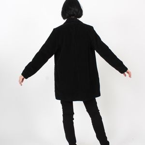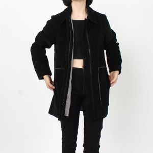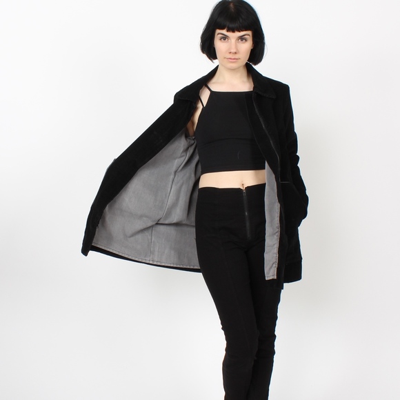 Stylish black utility jacket. Features a sleek design. Perfect for versatile wear.