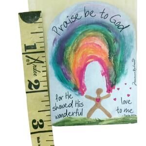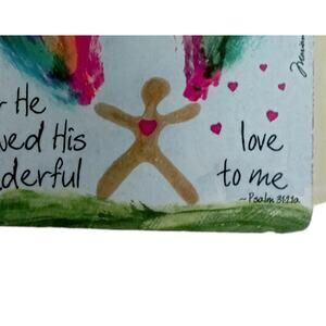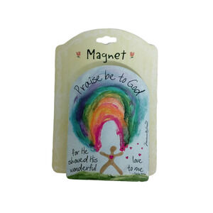 Inspirational magnet with rainbow colors and heartfelt message from Psalm 31:21. A beautiful reminder of God’s love and a sweet accent for your fridge or workspace.