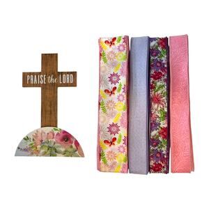 This sign and ribbon bundle includes a “Praise the Lord” Floral Cross sign with four perfectly coordinated ribbons, hand selected by me, to make a beautiful wreath. Bonus: you will also receive 4 butterfly picks.