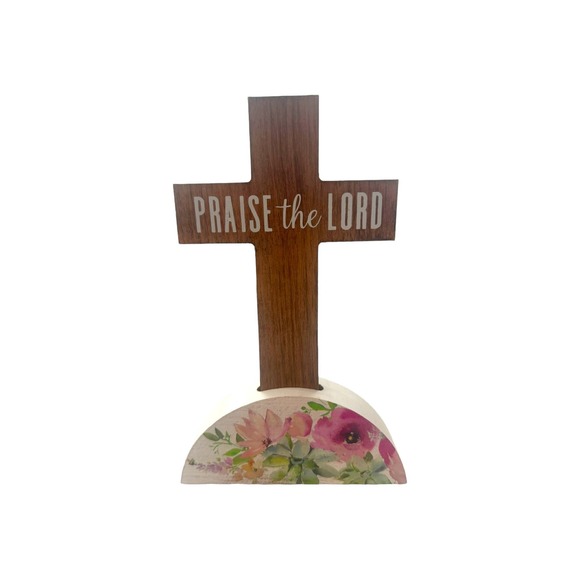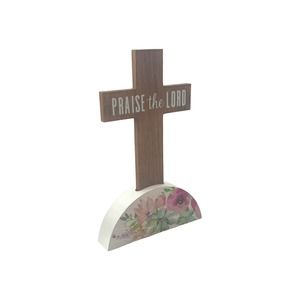 Praise the Lord Cross Tabletop Counter Mantle Easter Sign Plaque Spring Decor