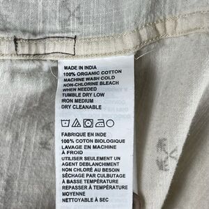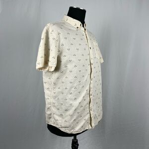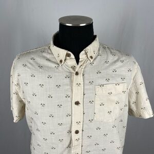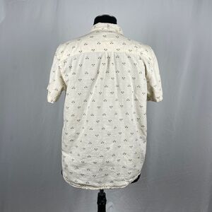 Cream 100% Organic Cotton With Palm Tree Pattern Prana Short Sleeve Button Front Shirt.