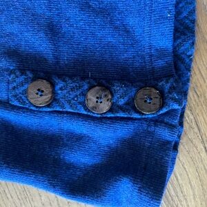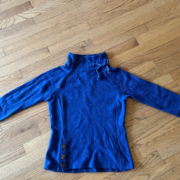 Prana cowl wool neck sweater with button and tie details. Smoke-free and pet-free home. Pit to pit: 18.5" Length: 23" Sleeve: 25"
