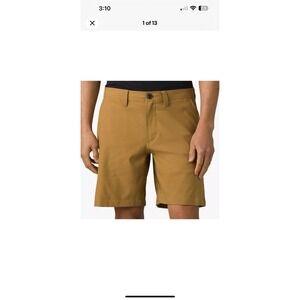 Prana Alameda 7" Shorts Men's Performance Fabric Zip Pocket Embark Brown Size 36