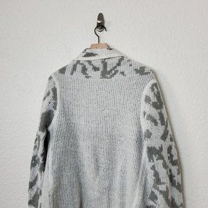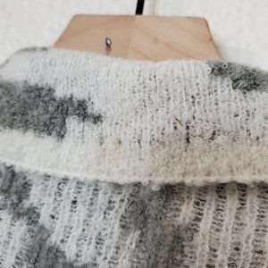 Details: Gray & White reversible relaxed fit Sweater. Boucle wrap Sweater with novelty Jacquard pattern. High-low hem, wool blend